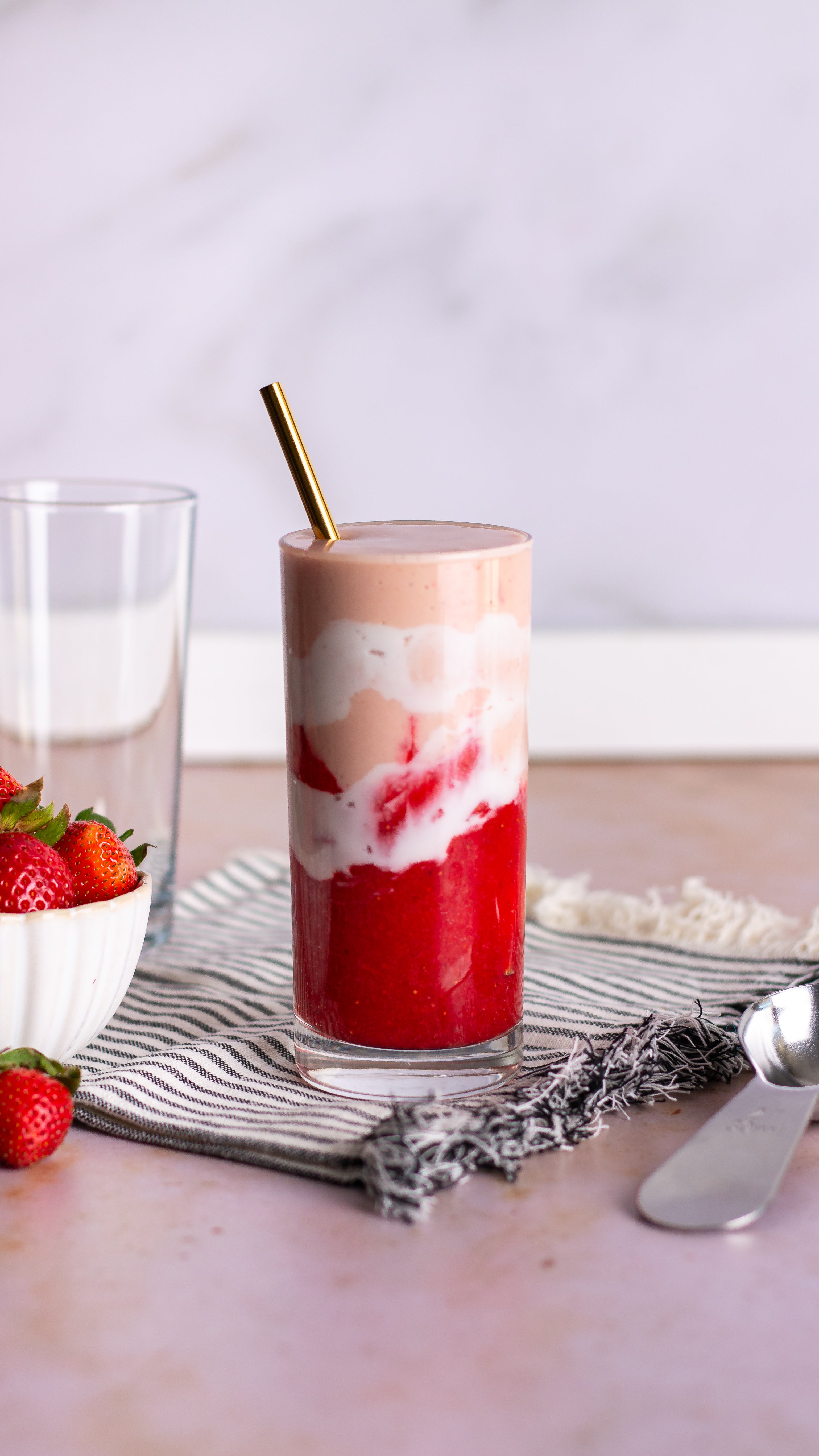 300ml de lait végétal (amande, avoine, soja..)2 scoops de maisons protéineAu choix: banane, dattes, mangue, fruits rouges, purée d'amande, beurre de cacahuètes, cacao en poudre..